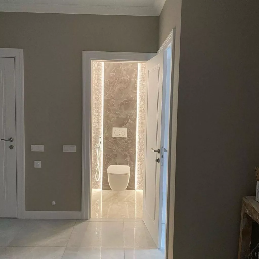 • Двери под цвет стен: Создают единое пространство, особенно в маленьких санузлах.