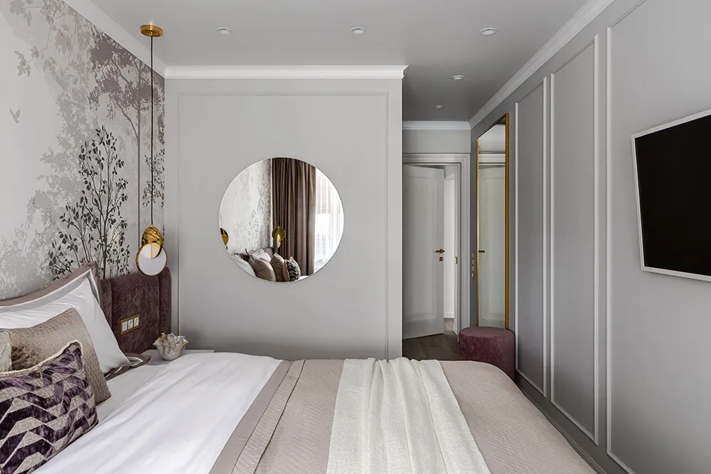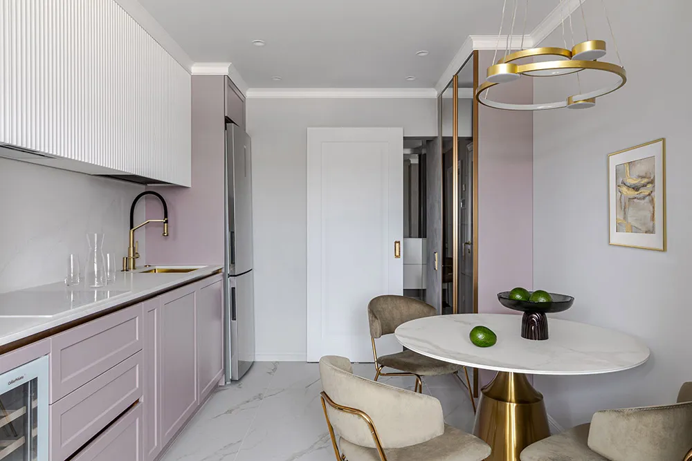 • Визуальное увеличение пространства: Белый цвет способен зрительно расширить помещение, сделав его более светлым и воздушным. Особенно это заметно в небольших комнатах, где светлые тона создают иллюзию большего объема.