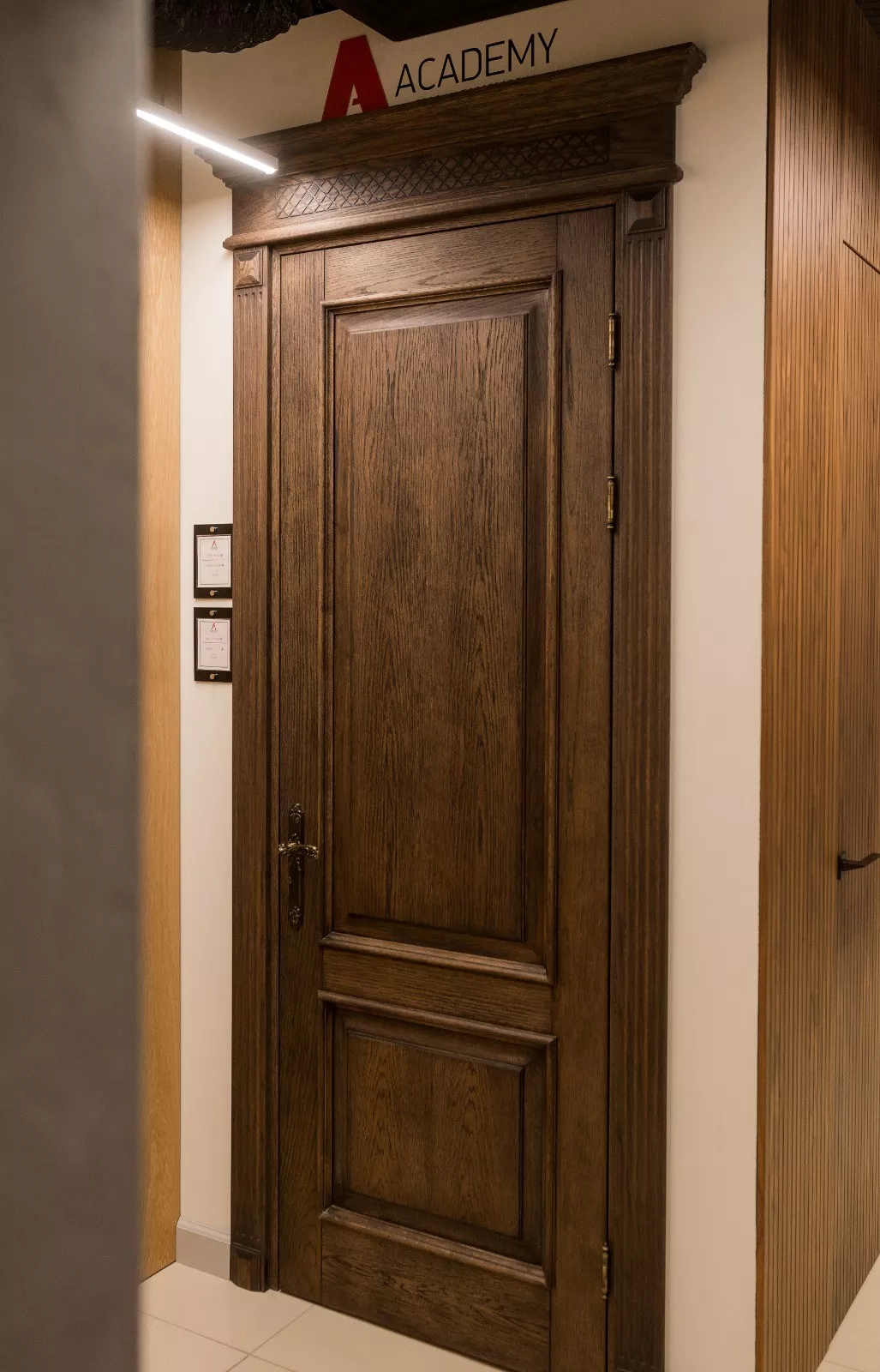 • Вес – такие двери тяжелее, чем из полотна МДФ или других материалов, поэтому требуется надежная фурнитура и крепления.
