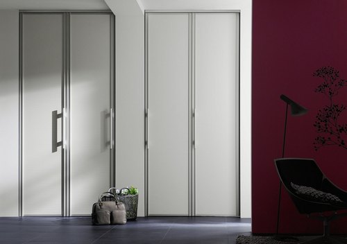 Материалы и вариации дизайна складных дверей-книжек в нишу чрезвычайно многообразны. Конструкции заказывают в том же стиле и цветовой палитре, что и другие модели в пределах видимости или выбирают для них уникальный декор. В частности, есть смысл обратить внимание:
