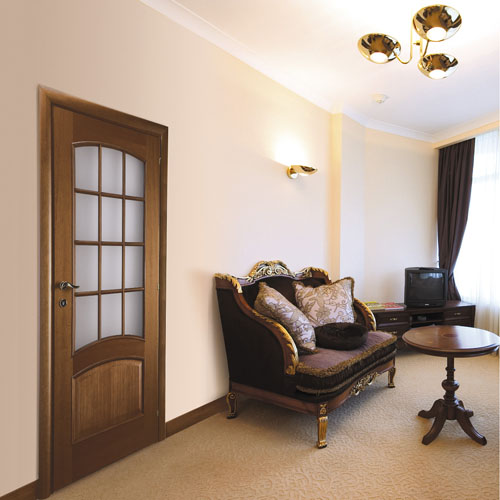 Созданию комфортабельного и аристократичного интерьера поспособствуют межкомнатные двери из шпона цвета итальянский орех. Это приятный коричневый оттенок, содержащий красные или оранжевые ноты. Модель, оформленная подобным образом, составляет достойную конкуренцию экзотическим решениям с отделкой красным деревом.